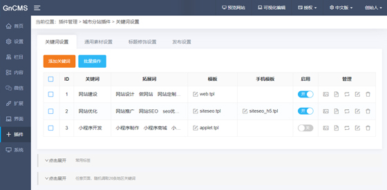 使用甘果云网站建设全网营销平台网站后,可开启分站城市分站,SEO效果神奇